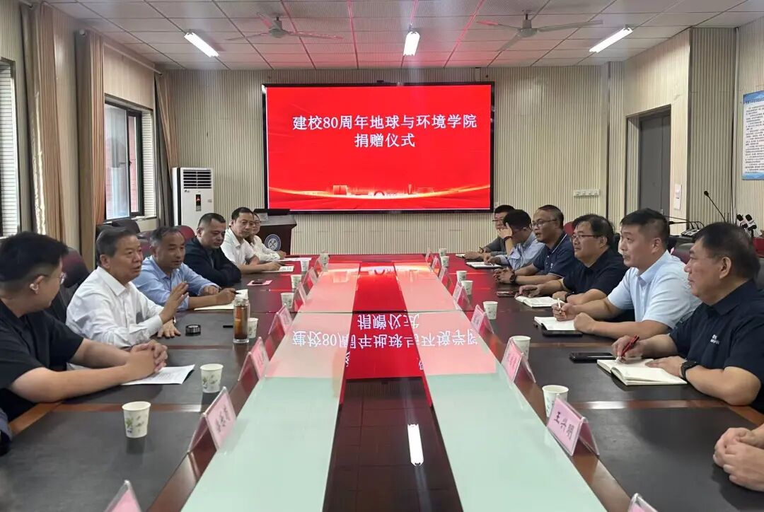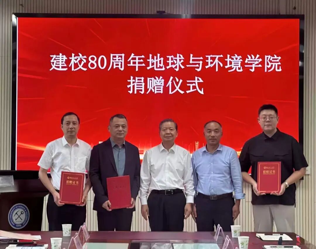 总经理刘惠洲在捐赠企业代表发言中表示,安徽理工大学及地球与环境学院为国家培养了大批优秀人才,与我司在技术研发与人才培养方面建立了深厚的合作基础。值此安徽理工大学八十华诞之际,我司向地球与环境学院捐赠一批价值200万元教学科研设备(YDT3矿用三频电磁波透视仪工程与科研装备一套、YBD12矿用网络并行电法仪一套、YZD11矿用槽波地震电法仪一套、YZG9.6矿用随钻孔测震轨迹仪一套)及20万元专项奖学金,期待能够为学院教学科研和人才培养事业添砖加瓦,为搭建更高水平的校企科研平台贡献力量。